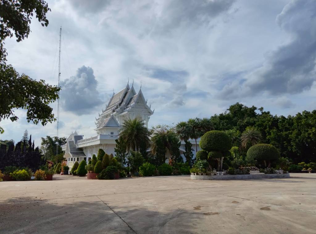 The temple’s Ubosot is dazzling white in color that makes such a stunning contrast to the greenery.