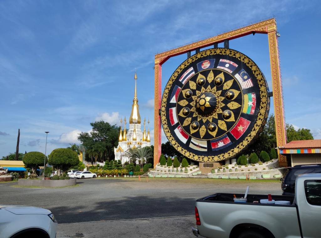 Wat Tham Khuha Sawan in Ubon Ratchathani, nests the largest gong in Thailand.